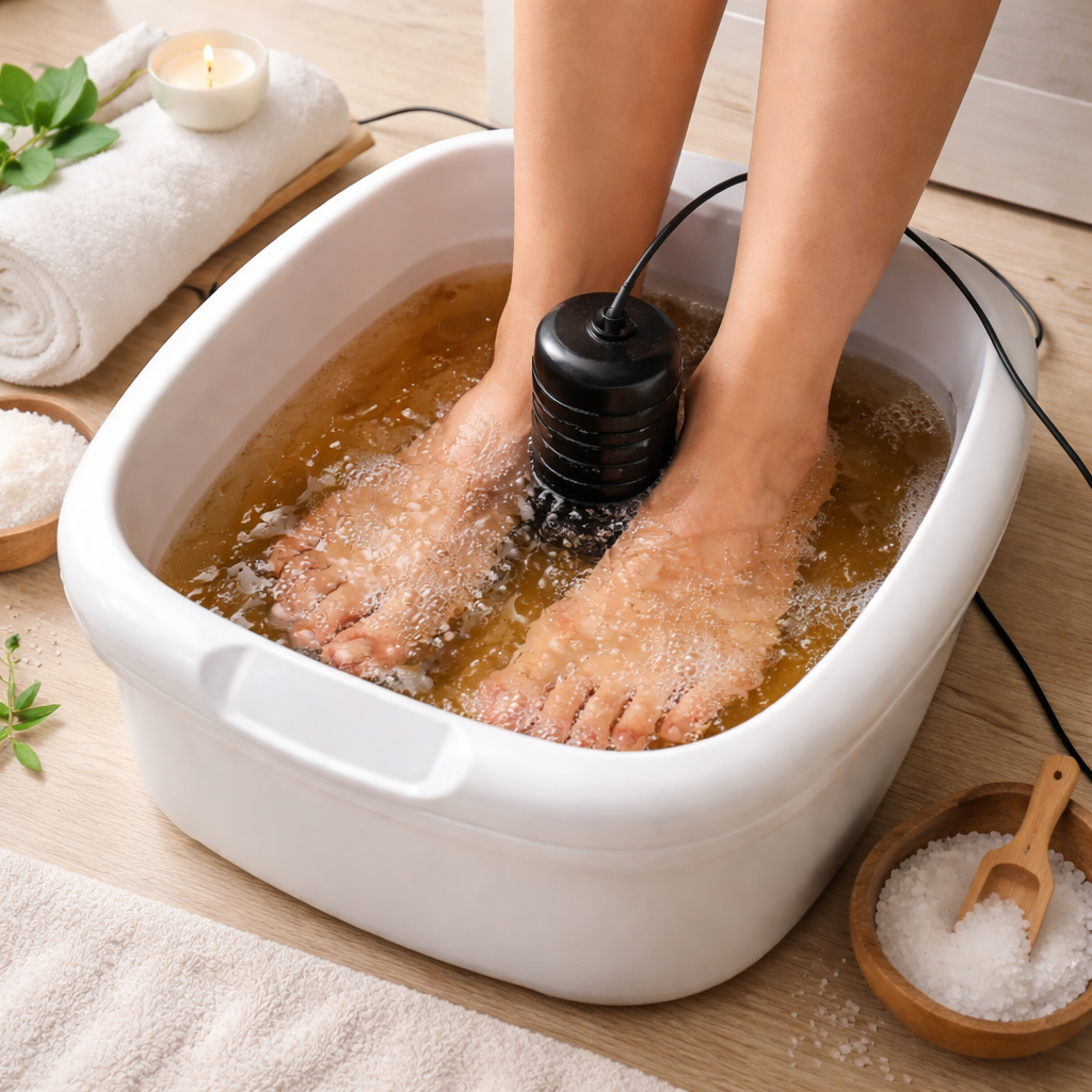 An ionic foot soak is a relaxing wellness service where your feet are placed in warm, salted water while a device creates a gentle ionic charge. This process is designed to support the body’s natural detoxification pathways while promoting relaxation and balance.