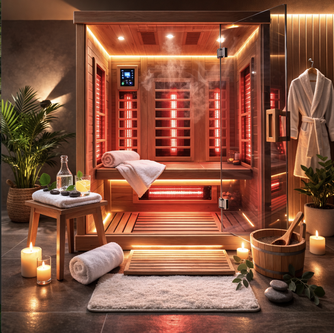 - 15-minute sauna session to promote deep relaxation and detox